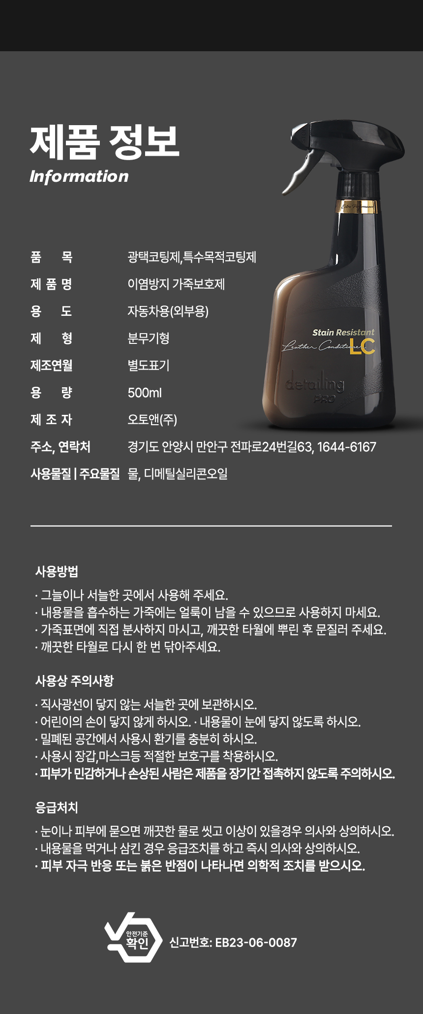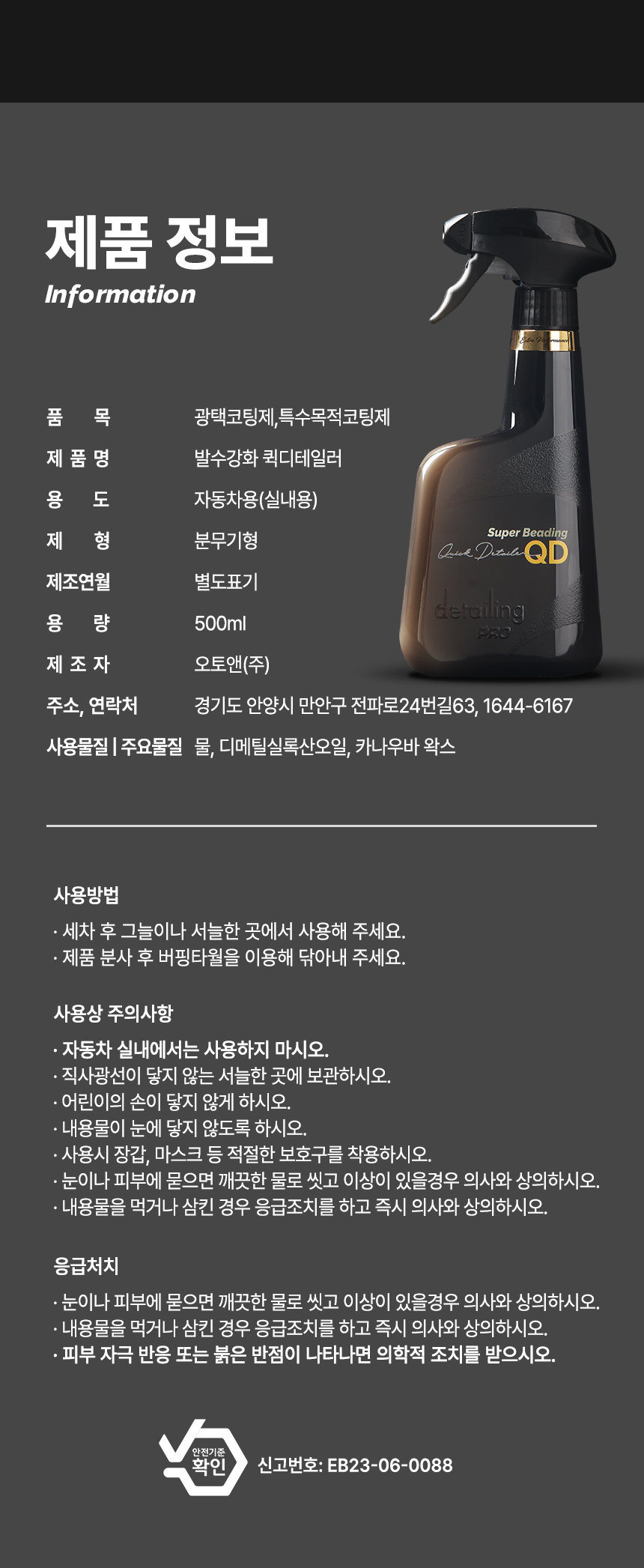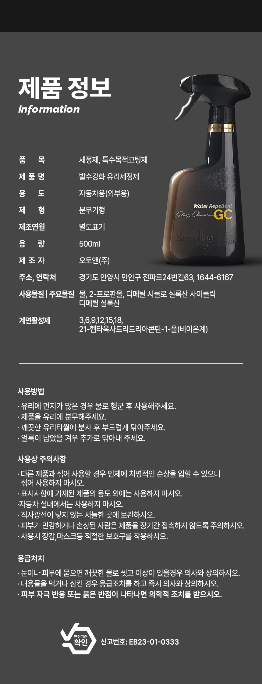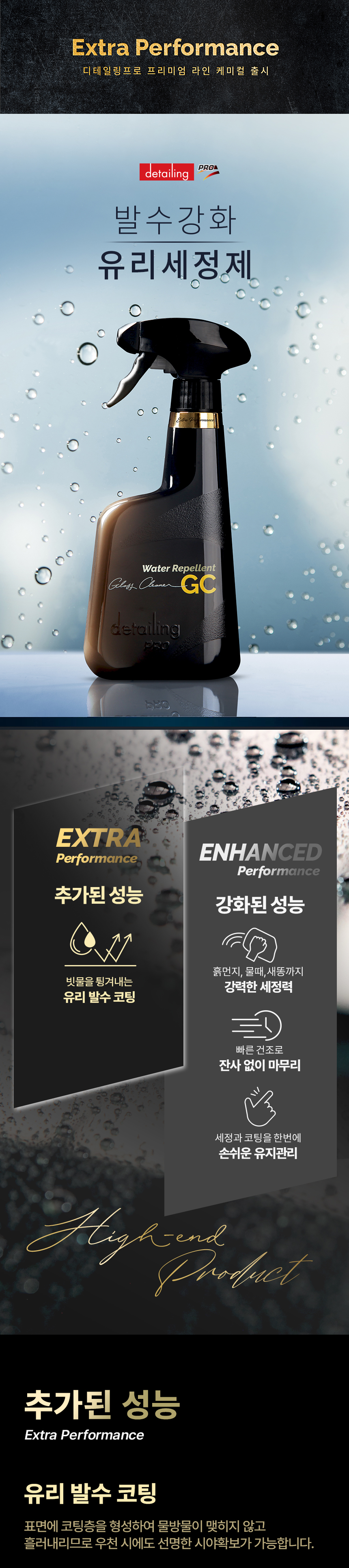 [버핑타월 증정] 디테일링프로 EP라인 고급형 세차 광택제 3종세트(유리세정제, 가죽보호제, 퀵디테일러)