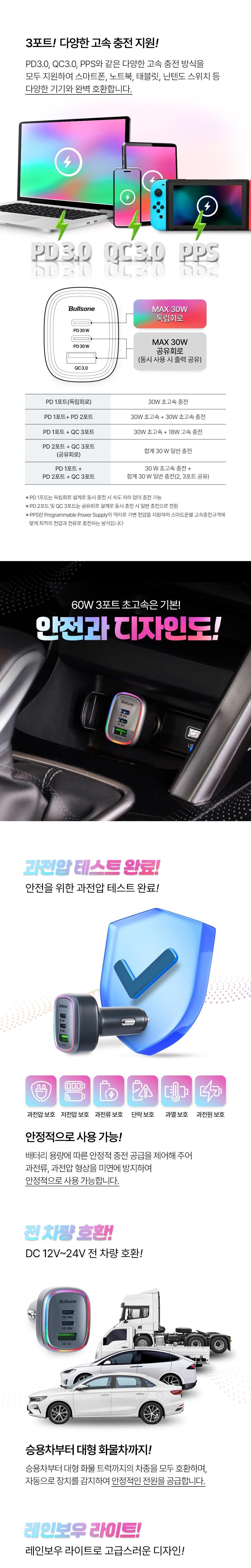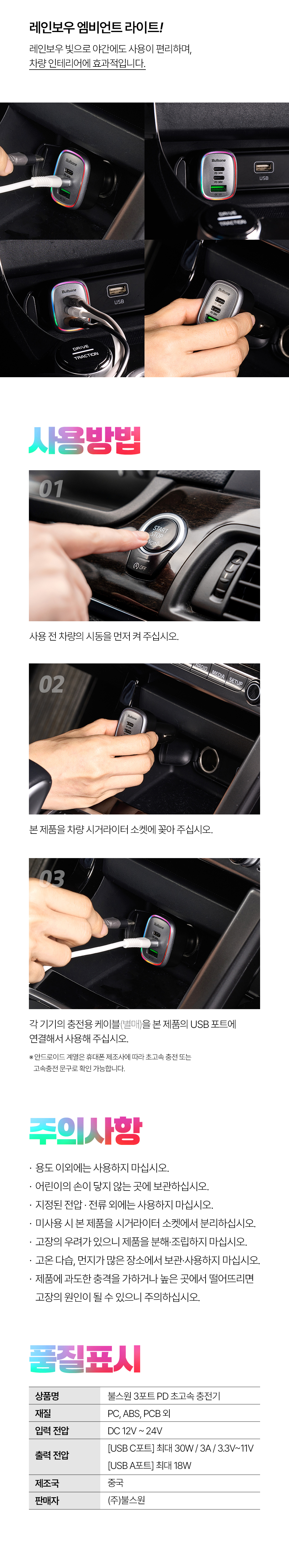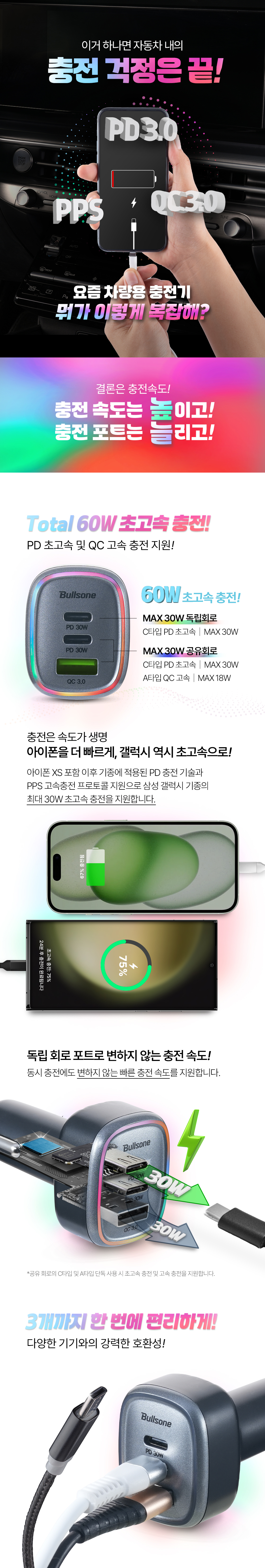 C타입, USB 타입 초고속 충전 지원 3포트 PD 충전기