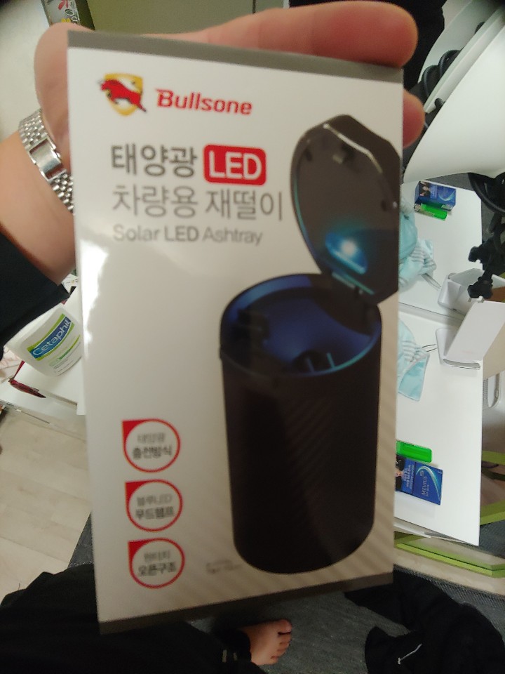 태양광 충전으로 배터리 없이 편리한 자동소화 LED 차량용 재떨이