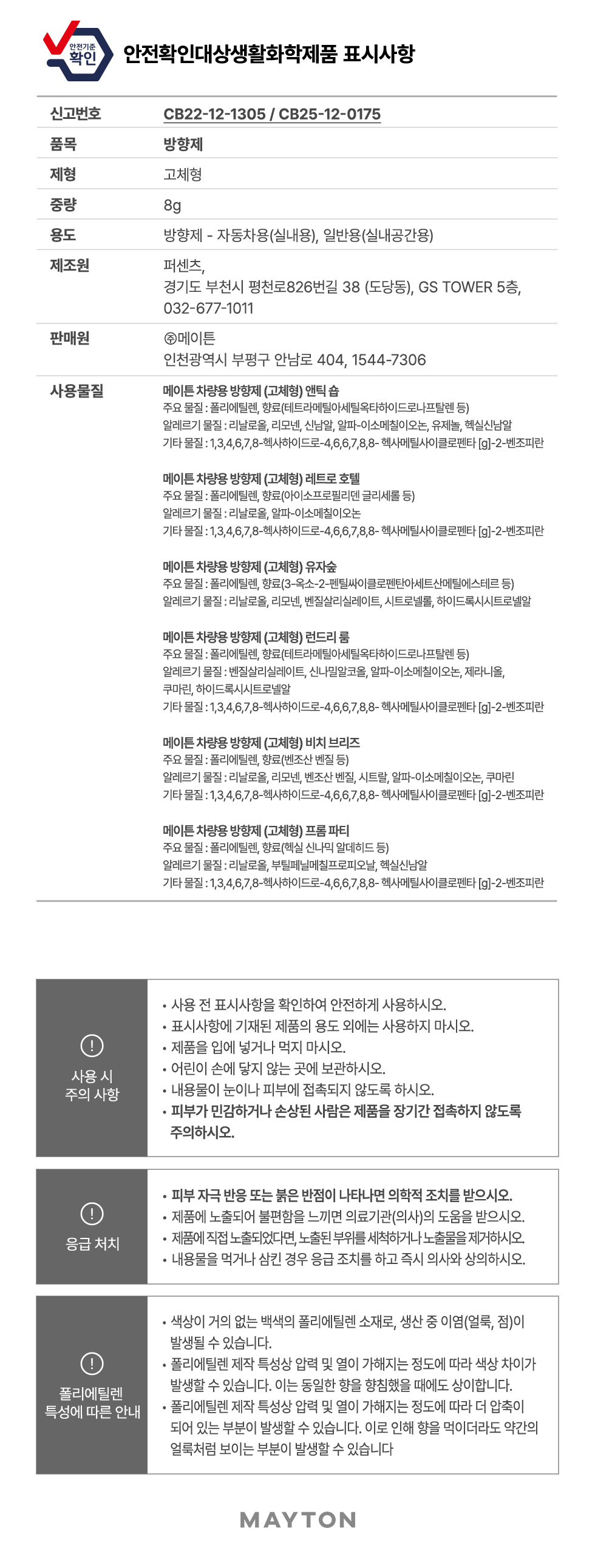 8. 제품사용으로 인한 위험 및 유의사항(연료절감장치에 한함)