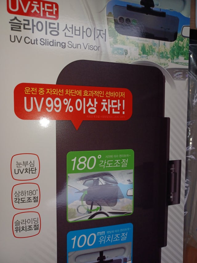 클립형 장착, 상하좌우 조절로 눈부심, UV 차단 햇빛가리개