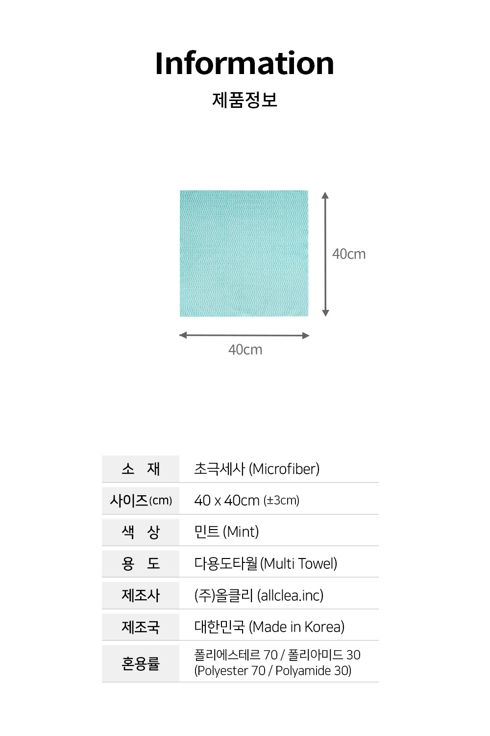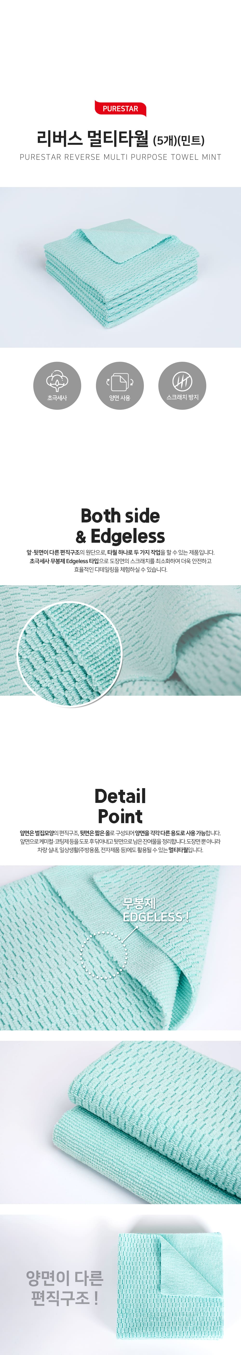 • [퓨어스타] 리버스 멀티타월(민트)(5개) 다용도타월