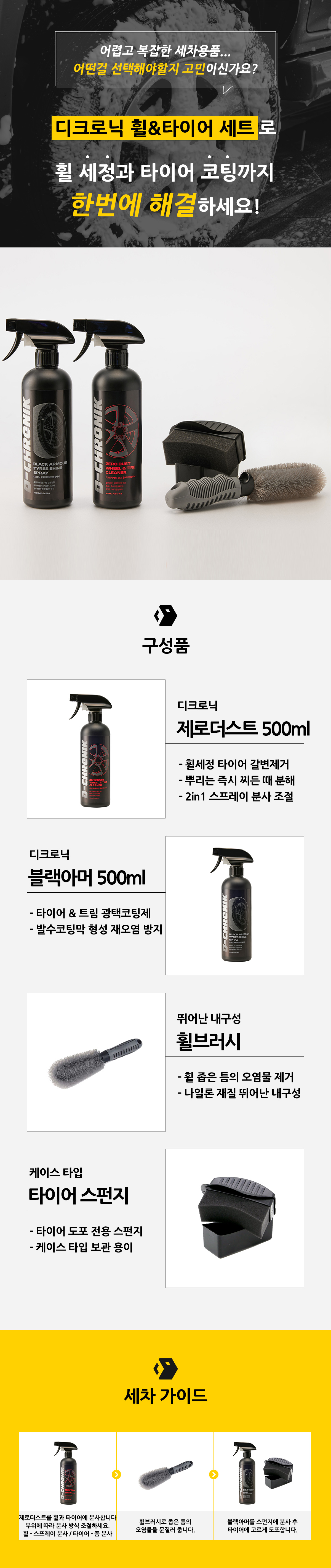 • [4월 특가]디크로닉 휠앤타이어 클리너 타이어 갈변 제거제 세트
