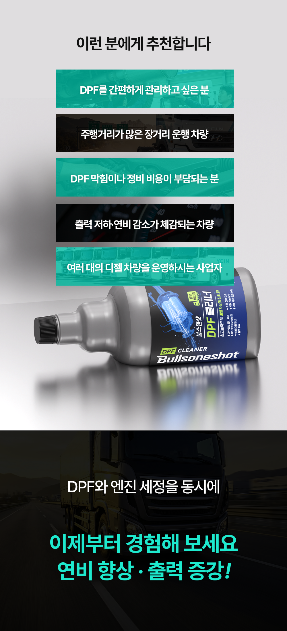 dpf 강력 세정 & 성능 복원, 경유 전용, 대형차 전용