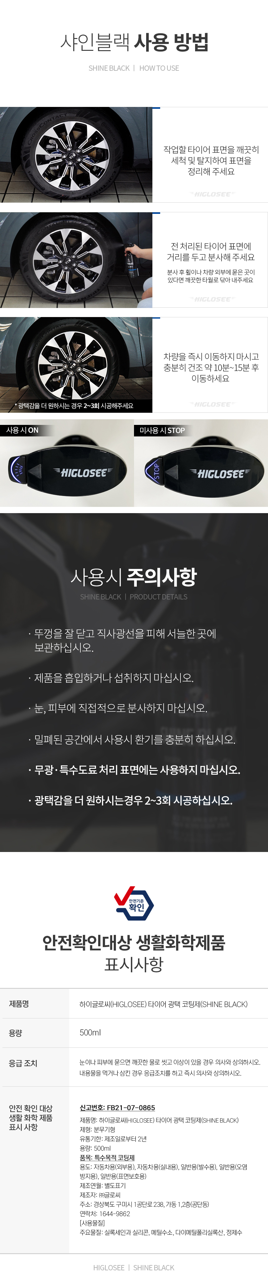 • [4월 특가] 하이글로씨 타이어코팅제 샤인블랙 500ML
