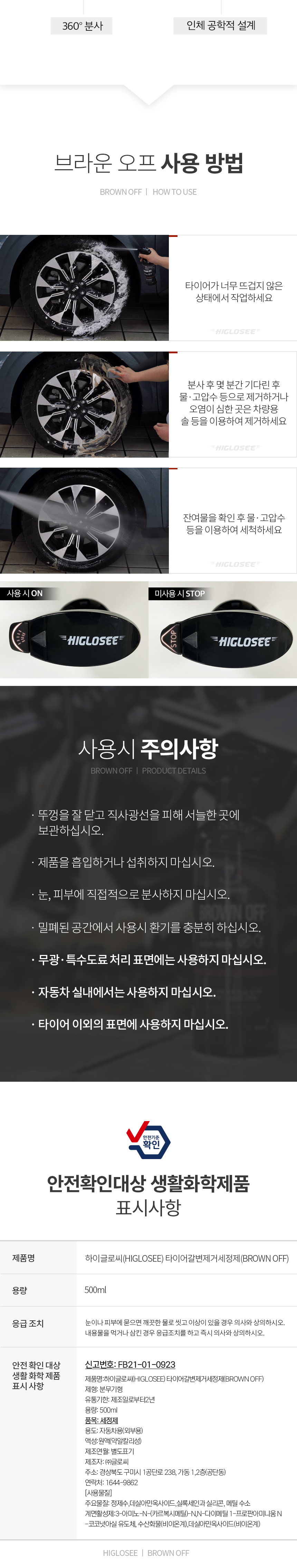 브라운 오프 갈변제거 타이어 세정제 500ML