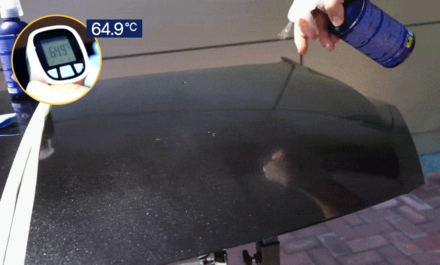 얼룩이 생겼다면 다시 한번 분사하여 닦아내시오.