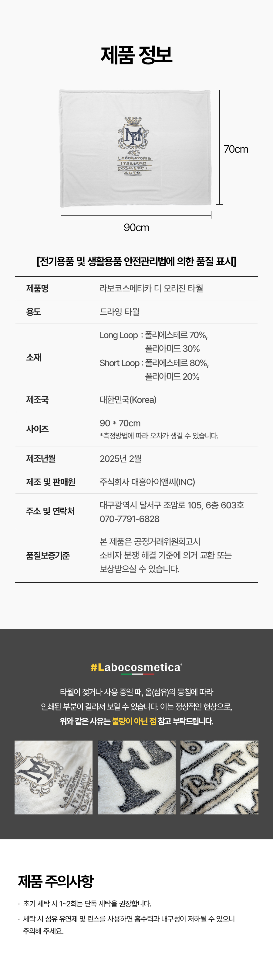 라보코스메티카 디 오리진 타월